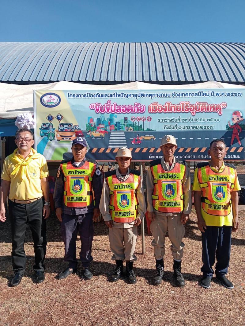 description เทศบาลตำบลหนองสนมได้จัดโครงการป้องกันและแก้ไขปัญหาทาอุบัติเหตุทางถนน (เทศกาลปีใหม่) ประจำปี พ.ศ.2567 ระหว่างวันที่ 29 ธันวาคม 2566 - 4 มกราคม 2567 มีจุดตรวจ/ด่านชุมชน 5 จุด ในเขตเทศบาลตำบลหนองสนม จุดตรวจที่ 1 บ้านตาดโตน หมู่ที่ 2 ,21 ร่วมกับหมู่ที่ 22 ,3 , 4 จุดตรวจที่ 2 บ้านโพนแพง หมู่ที่ 6 , 19 จุดตรวจที่ 3 บ้านก่อ หมู่ที่ 11 , 15 จุดตรวจที่ 4 เชียงเพ็ง หมู่ที่ 12 , 16 ร่วมกับหมู่ที่ 9 , 17 จุดตรวจที่ 5 นาจาร หมู่ที่ 7 ,20 ร่วมกับหมู่ที่ 10 โดยมีสมาชิก อปพร. ผู้นำชุมชน และ อสม. พร้อมปฏิบัติหน้าที่ครบทั้ง 5 จุด พร้อมปฏิบัติหน้าที่ person สำนักปลัด