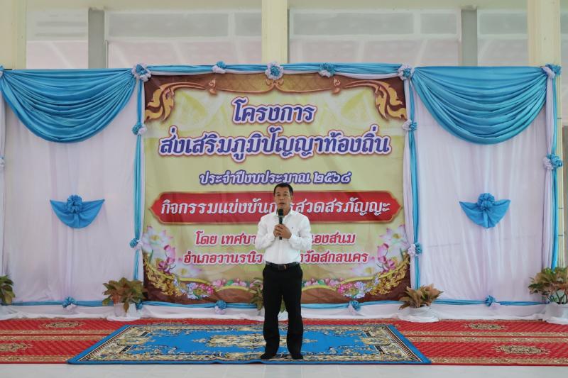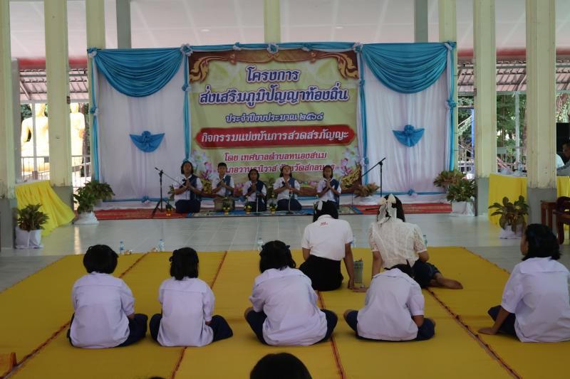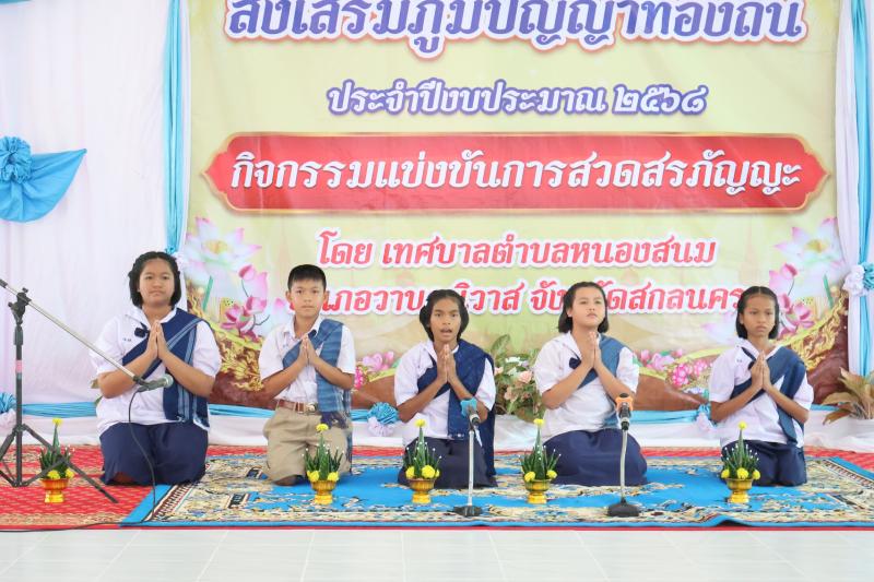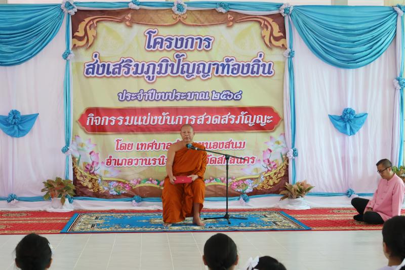 description เวลา 09.00 น. พระครูปพระครูปัญญาธรรมรังสี เจ้าคณะอำเภอวานรนิวาส เป็นประธานเปิดโครงการส่งเสริม ภูมิปัญญาท้องถิ่น ประจำปี 2568 (กิจกรรมแข่งขันการสวดสรภัญญะ) ณ วัดโนนสว่างภิรมย์ บ้านนาคอย หมู่ที่ 13 ตำบลหนองสนม อำเภอวานรนิวาส จังหวัดสกลนคร โดยมี นายเสริมสุข สุพล นายกเทศมนตรีตำบล หนองสนม พร้อมคณะผู้บริหาร สมาชิกสภาเทศบาล ผู้อำนวยการโรงเรียน ทั้ง 12 โรงเรียน พร้อมคณะครู เจ้าหน้าที่เทศบาล และนักเรียน เข้าร่วมโครงการในครั้งนี้ person สำนักปลัด