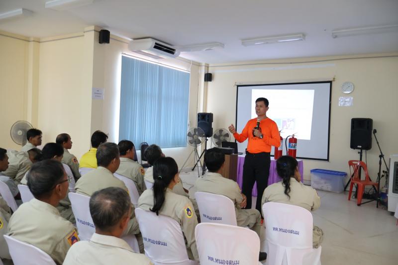 description เวลา 09.00 น. น.นายเสริมสุข สุพล นายกเทศมนตรีตำบลหนองสนม เป็นประธานเปิดโครงการซ้อมแผนป้องกันและบรรเทาสาธารณภัย ประจำปี พ.ศ.2568 ณ ห้องประชุมเทศบาลตำบลหนองสนม เพื่ออบรมให้ความรู้ ฝึกปฏิบัติงานจริงเกี่ยวกับการป้องกันภัยในรูปแบบต่างๆ ในการช่วยเหลืองานของเจ้าหน้าที่ ในกรณีที่มีเหตุจำเป็นเร่งด่วน โดยมีสมาชิก อปพร. พนักงานเทศบาล พนักงานจ้าง ผู้นำชุมชนและประชาชนทั่วไป ผู้เข้าร่วมโครงการฯ จำนวน 60 คน person สำนักปลัด