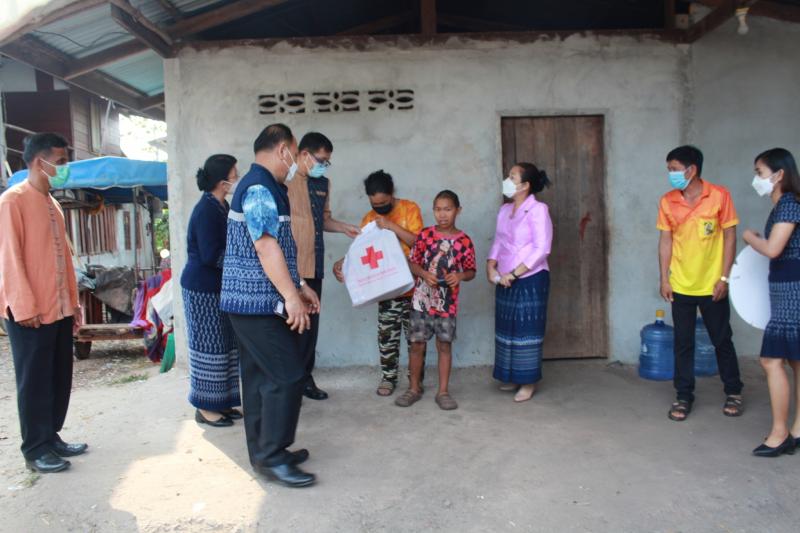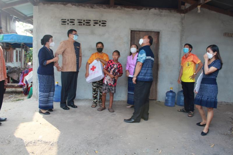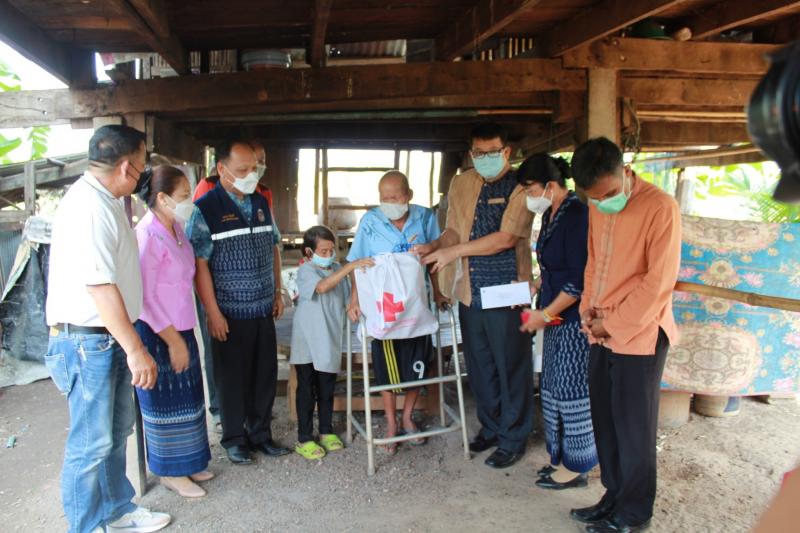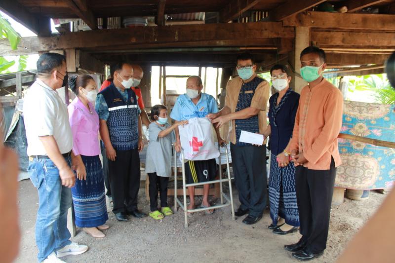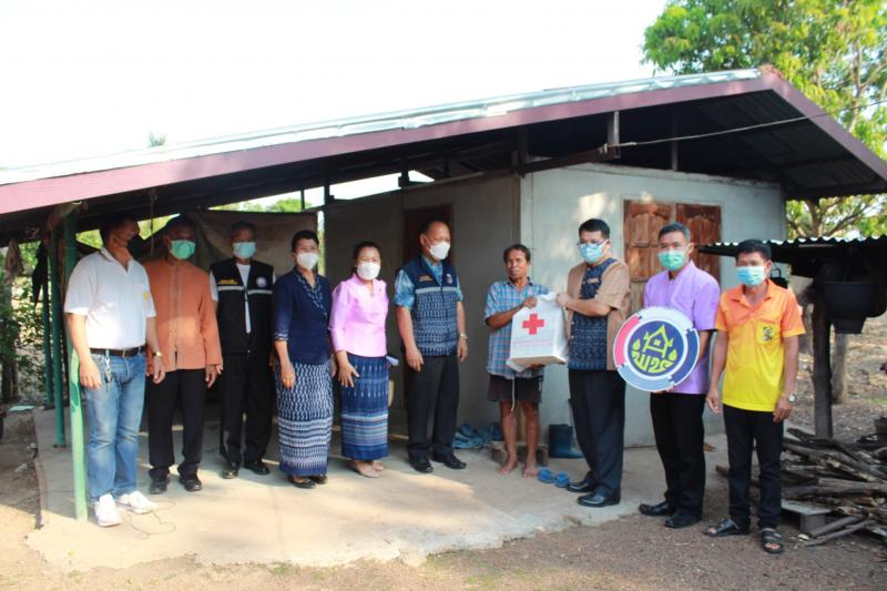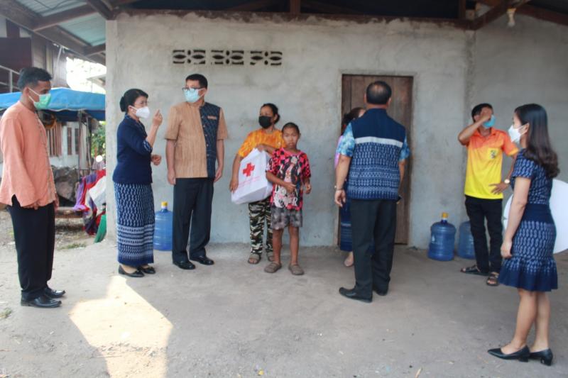 นายจิรศักดิ์ สีมหามาตย์ ผู้ตรวจราชการกรมพัฒนาชุมชนพร้อมนายกเทศมนตรีตำบลหนองสนมออกเยี่ยมและมอบถุงยังชีพเพื่อเป็นขวัญและกำลังใจ