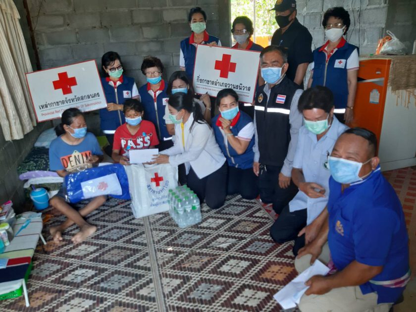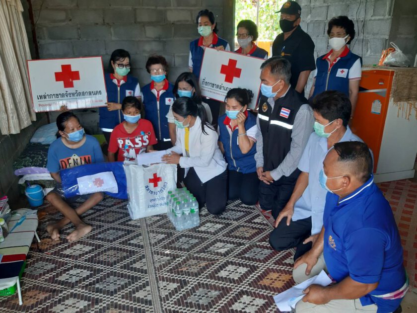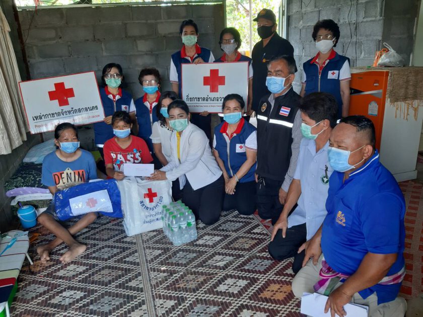 นายกกิ่งกาชาดอำเภอวานรนิวาส ร่วมกับนายกเทศมนตรีตำบลหนองสนม ออกเยี่ยมบ้านและให้กำลังใจ ผู้พิการและผู้ยากไร้ รายนางสาวสุภาภรณ์ บัวพินธุ บ้านเลขที่ 66 หมู่ 19 บ้านโพนแพง