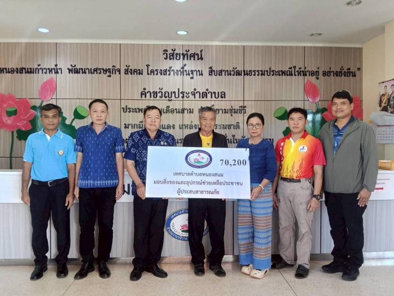 description เวลา 09.00 น. นายเสริมสุข สุพล นายกเทศมนตรีตำบลหนองสนม ได้มอบเงินช่วยเหลือผู้ประสบภัยสาธารณภัย (อัคคีภัย) แก่ผู้ประสบภัยราย นายธีระชัย มายอด บ้านน้ำบุ้นพัฒนา หมู่ที่ 22 ตำบลหนองสนม อำเภอวานรนิวาส จังหวัดสกลนคร person สำนักปลัด