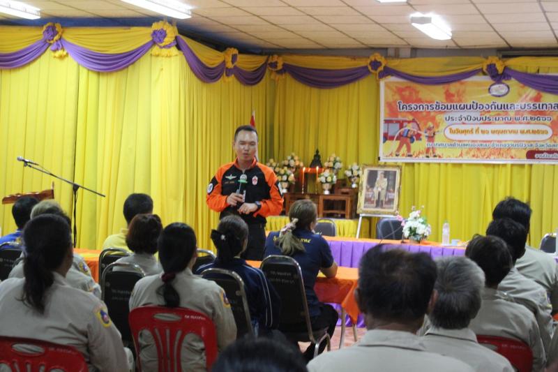 description วันศุกร์ที่ 26 พฤษภาคม 2566 เวลา 09.00 น. นายปิยะ ผาสุวรรณ รองนายกเทศมนตรีตำบลหนองสนม เป็นประธานเปิดโครงการซ้อมแผนป้องกันและบรรเทาสาธารณภัย ประจำปีงบประมาณ พ.ศ.2566 โดยมีวัตถุประสงค์เพื่ออบรมให้ความรู้ ฝึกปฏิบัติงานจริงเกี่ยวกับการป้องกันภัยในรูปแบบต่างๆ ในการช่วยเหลืองานของเจ้าหน้าที่ในกรณีที่มีเหตุจำเป็นเร่งด่วน โดยมีกลุ่มเป้าหมาย คือ สมาชิก อปพร. พนักงานเทศบาล พนักงานจ้าง ผู้นำชุมชน และประชาชนทั่วไป จำนวน 60 คน โดยจัดโครงการดังกล่าว ณ ห้องประชุมเทศบาลตำบลหนองสนม person สำนักปลัด