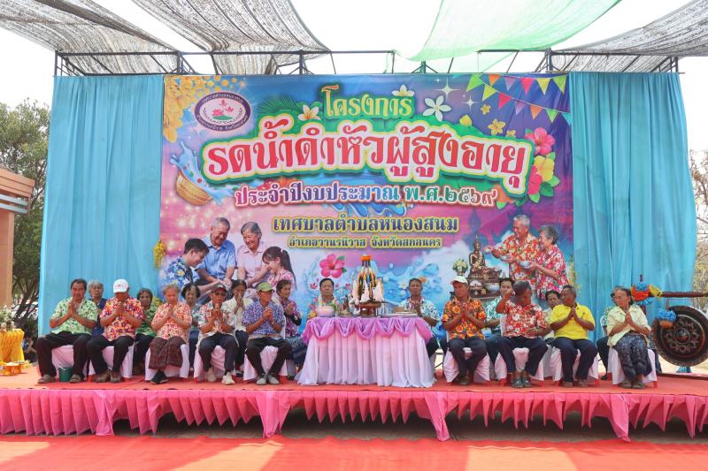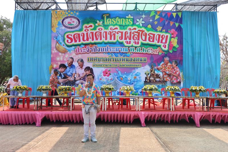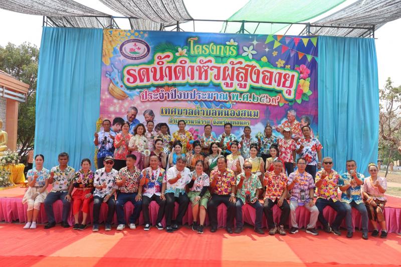 description เวลา 09.00 น. นายเสริมสุข สุพล นายกเทศมนตรีตำบลหนองสนม เป็นประธานเปิดโครงการรดน้ำดำหัวผูัสูงอายุ ประจำปีงบประมาณ พ.ศ 2569 เพื่อสืบสานขนบธรรมเนียม ประเพณี วัฒนธรรมอันดีงามของชาวไทยและเป็นสิริมงคล ณ เทศบาลตำบลหนองสนม โดยมี คณะผู้บริหาร สมาชิกสภาเทศบาล เจ้าหน้าที่ กำนัน ผู้ใหญ่บ้าน เข้าร่วมโครงการในครั้งนี้ person สำนักปลัด