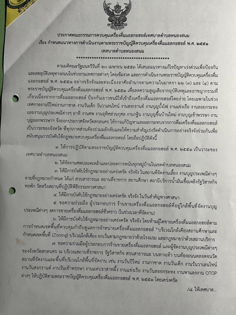 description ตามพระราชบัญญัติควบคุมยาสูบพ.ศ. 2560 และพระราชบัญญัติควบคุมเครื่องดื่มแอลกอฮอล์พ.ศ. 2551 ขอประกาศเทศบาลตำบลหนองสนมเรื่องนโยบายเทศบาลตำบลหนองสนมปลอดปลอดบุหรี่และเครื่องดื่มแอลกอฮอล์โดยให้ปฏิบัติตามประกาศและมาตรการนโยบายปลอดบุหรี่และเครื่องดื่มแอลกอฮอล์อย่างเคร่งครัดคอประกาศให้ทราบโดยทั่วกัน person สำนักปลัด