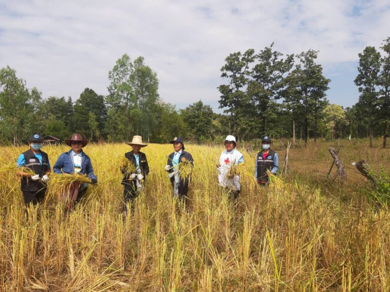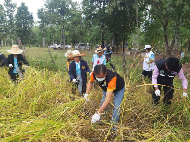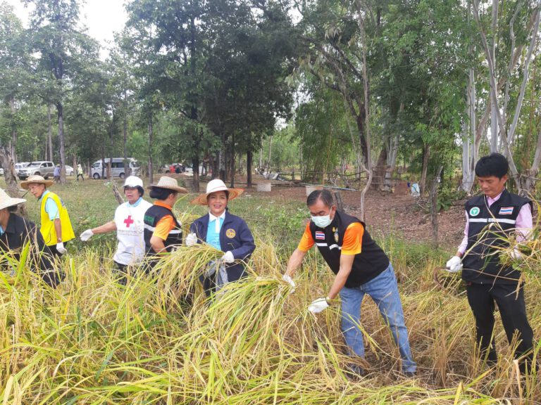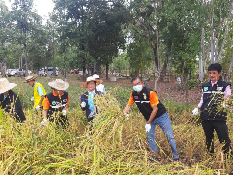 นายอำเภอวานรนิวาสร่วมกับนายกเทศมนตรีตำบลหนองสนม ปลัดเทศบาลตำบลหนองสนม เจ้าหน้าที่โรงพยาบาลส่งเสริมสุขภาพตำบลบ้านโพนแพง เกษตรอำเภอวานรนิวาส กำนันตำบลหนองสนม ชาวบ้านบ้านบะป่าคา ร่วมลงแขกเกี่ยวข้าว ณ บ้านบะป่า ตำบลหนองสนม อำเภอวานรนิวาส จังหวัดสกลนคร (12 ภาพ)