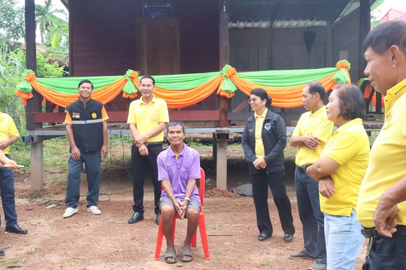 description เวลา 09.00 น. นางดอกจันทร์ วงค์มา นายกเทศมนตรีตำบลหนองสนม พร้อมคณะผู้บริหาร สมาชิกสภาเทศบาลและเจ้าหน้าที่เทศบาลข้าราชการ พนักงานเทศบาล และผู้นำชุมชน ได้จัดกิจกรรมมอบบ้านเพื่อผู้ยากไร้ แก่นายจิมมี่ เมื่องพรม บ้านโพนแพง หมู่ที่ 6 กรณีผู้สูงอายุ ที่ประสบปัญหาความเดือดร้อนด้านที่อยู่อาศัย ตามโครงการปรับสภาพแวดล้อมและสิ่งอำนวยความสะดวกของผู้สูงอายุให้เหมาะสม และปลอดภัย person สำนักปลัด