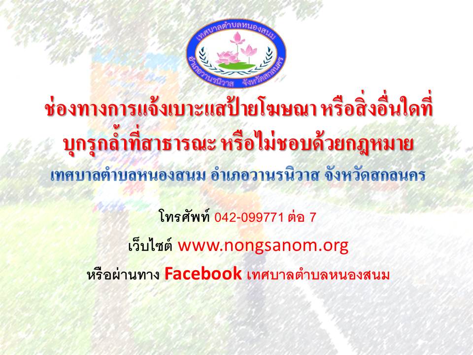 ช่องทางการแจ้งเบาะแสป้ายโฆษณา หรือสิ่งอื่นใดที่บุกรุกล้ำที่สาธารณะ หรือไม่ชอบด้วยกฎหมาย