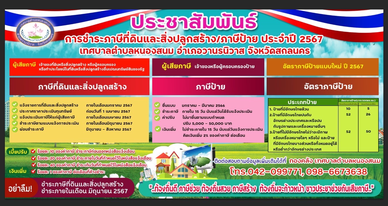 ประชาสัมพันธ์การชำระภาษีที่ดินและสิ่งปลูกสร้าง/ภาษีป้าย ประจำปี 2567