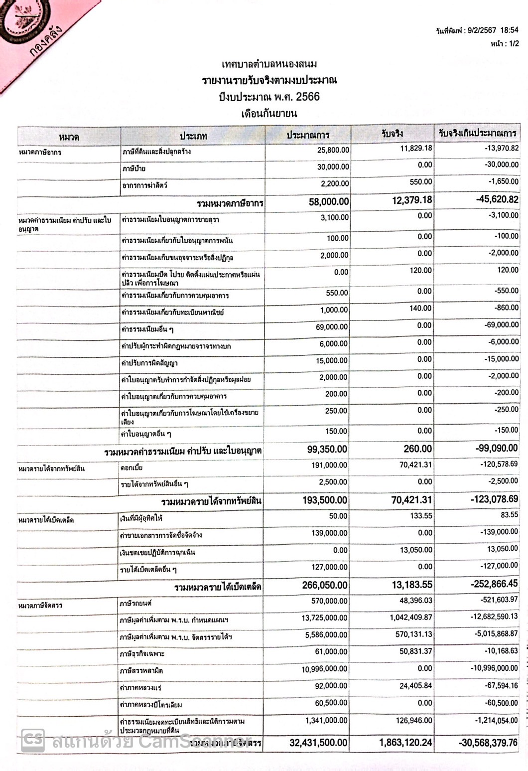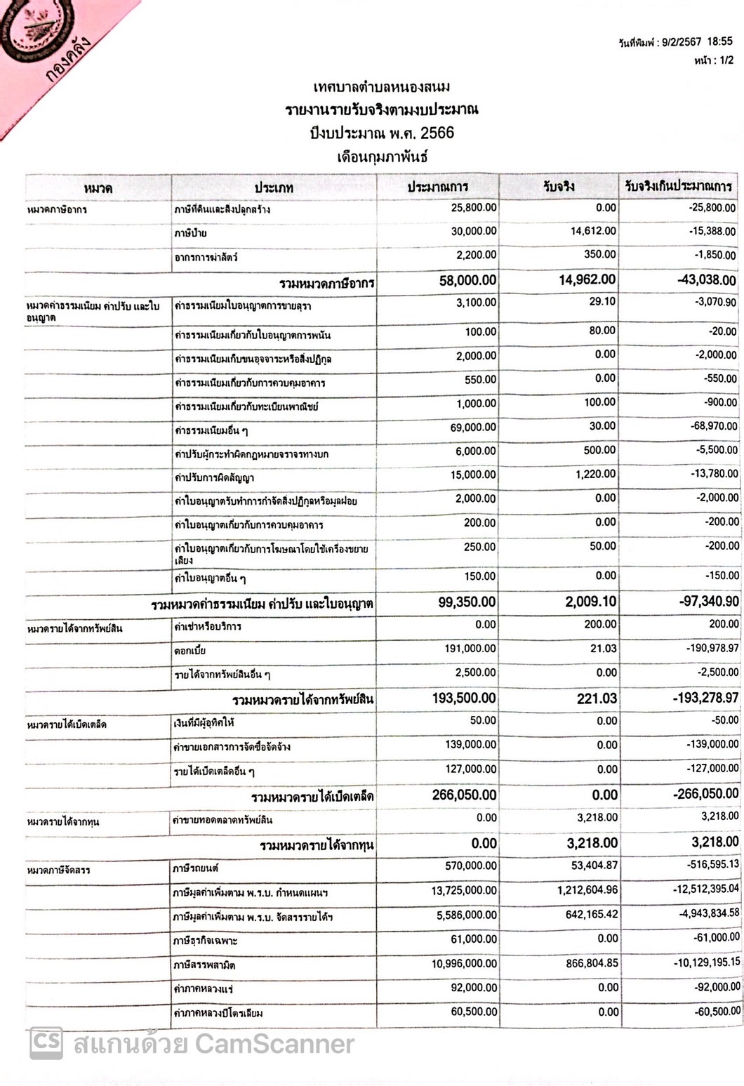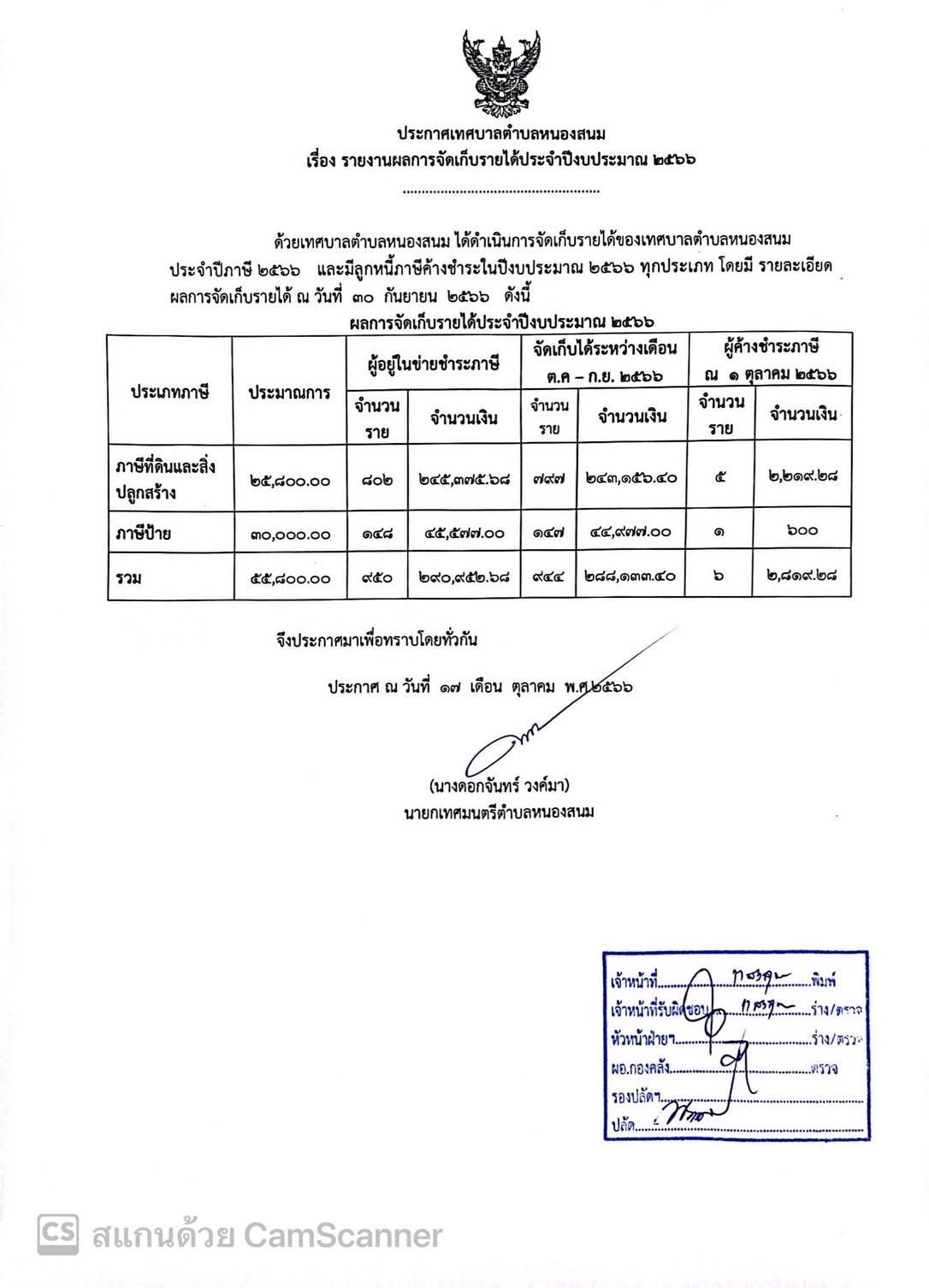 รายงานผลการจัดเก็บรายได้ภาษีป้ายและภาษีที่ดินและสิ่งปลูกสร้างกับค่าธรรมเนียมต่างๆ ปีงบประมาณ พ.ศ.2566 เผยแพร่ให้ประชาชนทั่วไปทราบ