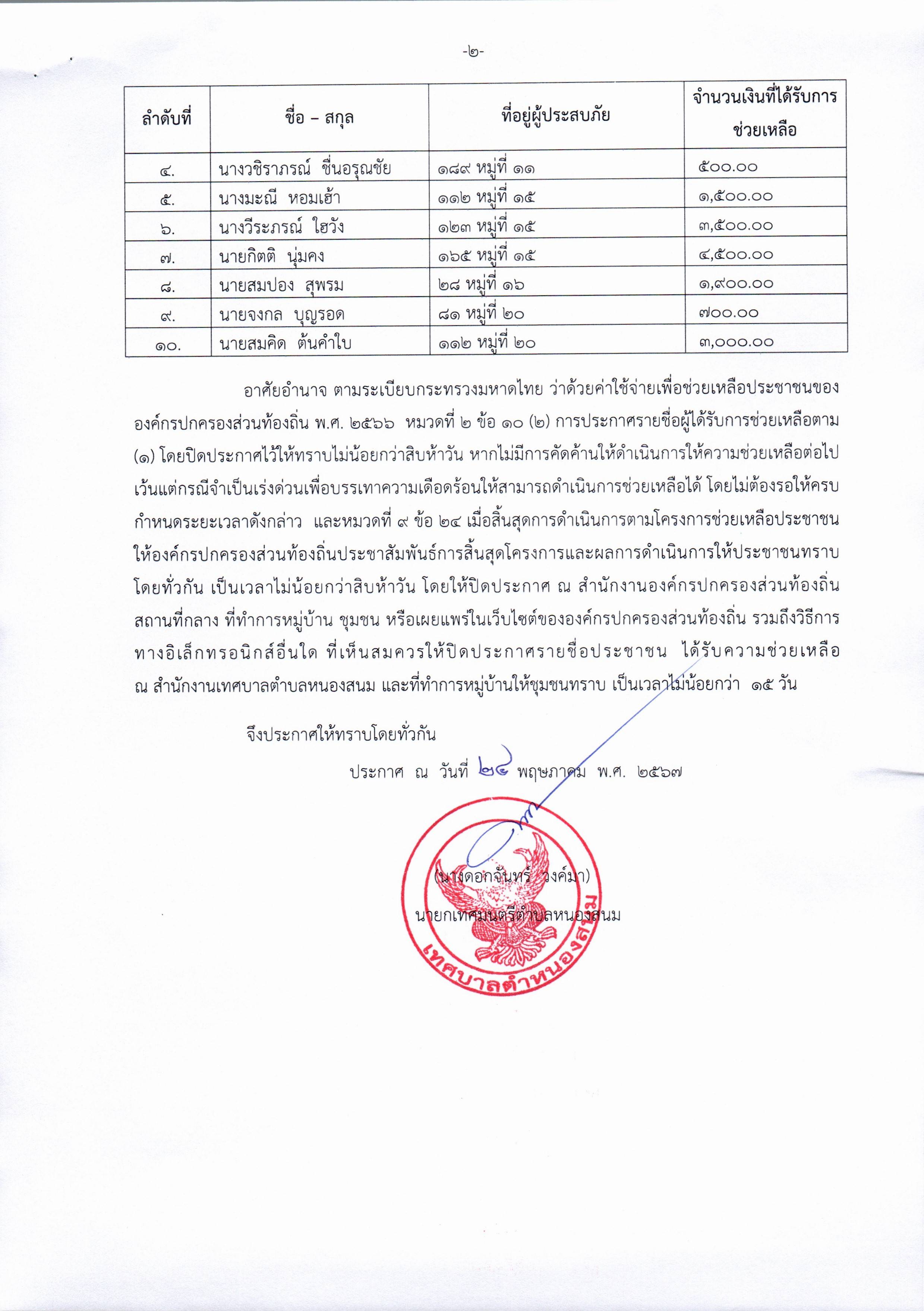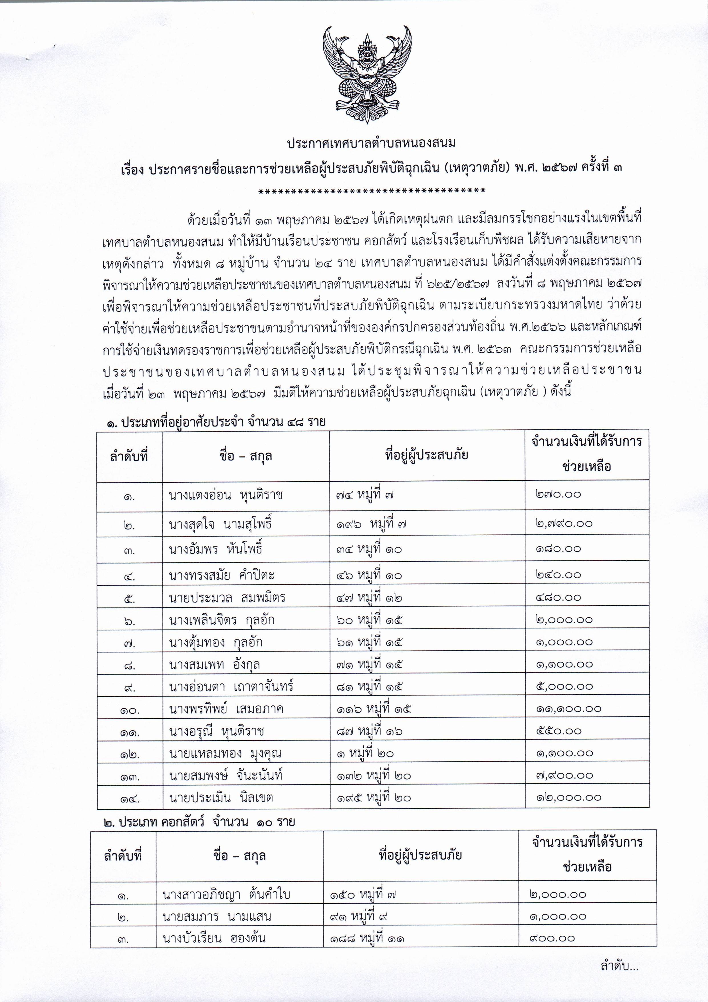 ประกาศรายชื่อและการช่วยเหลือผู้ประสบภัยพิบัติฉุกเฉิน (เหตุวาตภัย) พ.ศ. ๒๕๖๗ ครั้งที่ 3