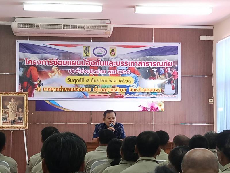 รายละเอียด : เวลา 09.00 น. น.นายเสริมสุข สุพล นายกเทศมนตรีตำบลหนองสนม เป็นประธานเปิดโครงการซ้อมแผนป้องกันและบรรเทาสาธารณภัย ประจำปี พ.ศ.2568 ณ ห้องประชุมเทศบาลตำบลหนองสนม เพื่ออบรมให้ความรู้ ฝึกปฏิบัติงานจริงเกี่ยวกับการป้องกันภัยในรูปแบบต่างๆ ในการช่วยเหลืองานของเจ้าหน้าที่ ในกรณีที่มีเหตุจำเป็นเร่งด่วน โดยมีสมาชิก อปพร. พนักงานเทศบาล พนักงานจ้าง ผู้นำชุมชนและประชาชนทั่วไป ผู้เข้าร่วมโครงการฯ จำนวน 60 คน