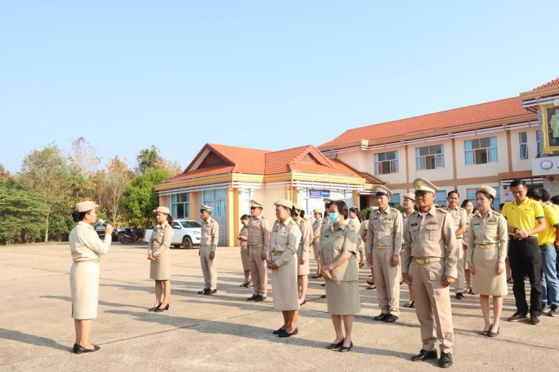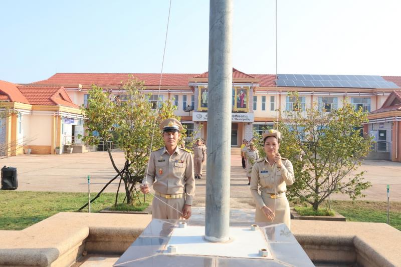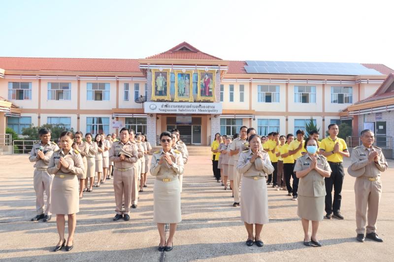 รายละเอียด : เวลา 08.00 น. นางดอกจันทร์ วงค์มา นายกเทศมนตรีตำบลหนองสนม พร้อมคณะผู้บริหาร พนักงานเทศบาล พนักงานจ้าง จ้างเหมาบริการ ทำกิจกรรมเข้าแถวเคารพธงชาติ สวดมนต์ไหว้พระ หลังเสร็จกิจกรรม นายกเทศมนตรีตำบลหนองสนม แจ้งข้อปฏิบัติราชการ และมอบนโยบายในการปฏิบัติงานให้กับบุคลากร ณ บริเวณหน้าเสาธง สำนักงานเทศบาลตำบลหนองสนม