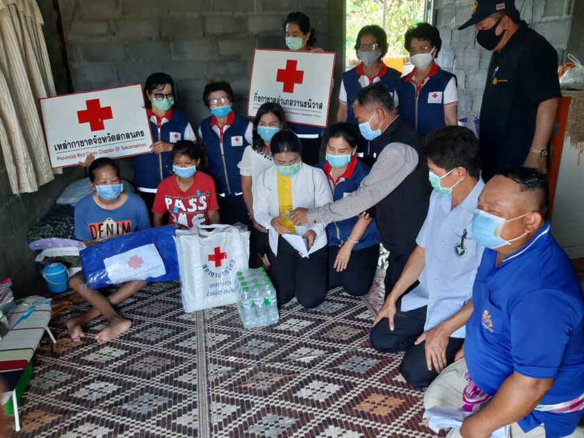 นายกกิ่งกาชาดอำเภอวานรนิวาส ร่วมกับนายกเทศมนตรีตำบลหนองสนม ออกเยี่ยมบ้านและให้กำลังใจ ผู้พิการและผู้ยากไร้ รายนางสาวสุภาภรณ์ บัวพินธุ บ้านเลขที่ 66 หมู่ 19 บ้านโพนแพง
