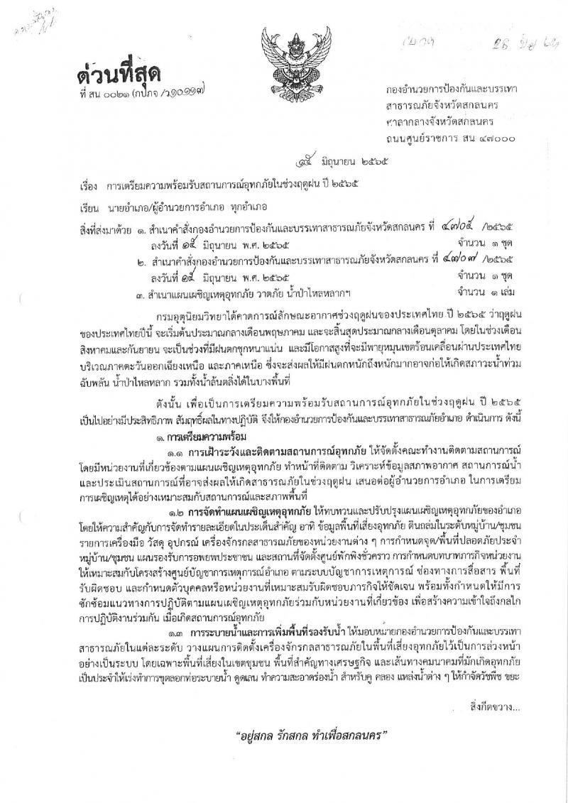 ประชาสัมพันธ์การเตรียมพร้อมรับสถานการณ์อุทกภัยในช่วงฤดูฝน ปี 2565