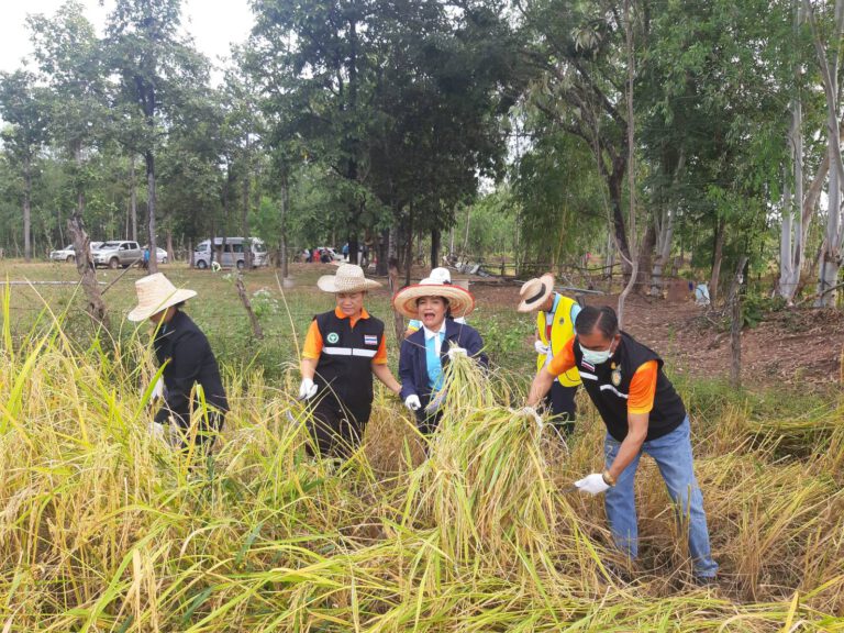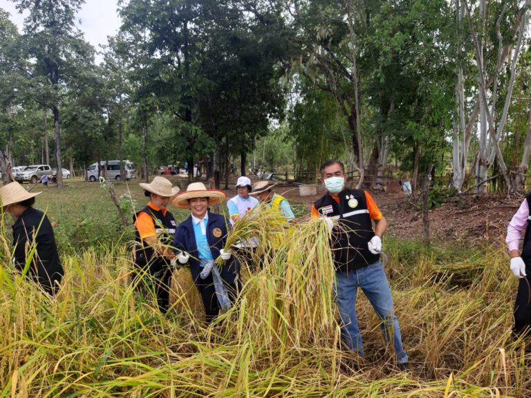 นายอำเภอวานรนิวาสร่วมกับนายกเทศมนตรีตำบลหนองสนม ปลัดเทศบาลตำบลหนองสนม เจ้าหน้าที่โรงพยาบาลส่งเสริมสุขภาพตำบลบ้านโพนแพง เกษตรอำเภอวานรนิวาส กำนันตำบลหนองสนม ชาวบ้านบ้านบะป่าคา ร่วมลงแขกเกี่ยวข้าว ณ บ้านบะป่า ตำบลหนองสนม อำเภอวานรนิวาส จังหวัดสกลนคร (12 ภาพ)