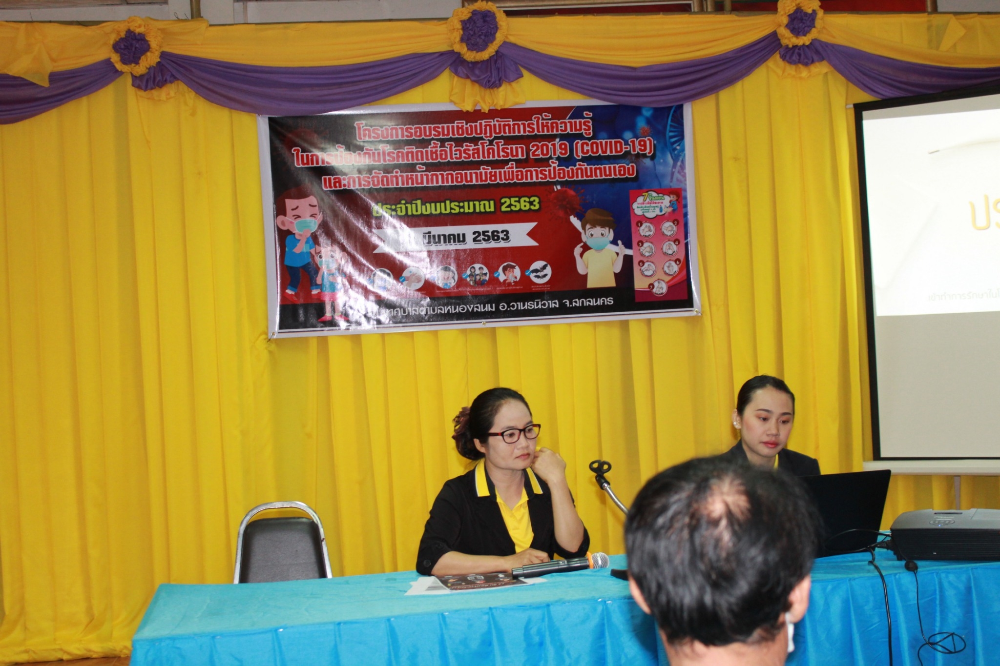 รายละเอียด : โครงการอบรมเชิงปฏิบัติการให้ความรู้ในการป้องกันโรคติดเชื้อไวรัสโคโรนา 2019 (COVID-19)และการจัดทำหน้ากากอนามัยเพื่อการป้องกันตนเอง ในวันที่ 11 มีนาคม 2563 ณ ห้องประชุมเทศบาลตำบลหนองสนม(หลังเก่า)