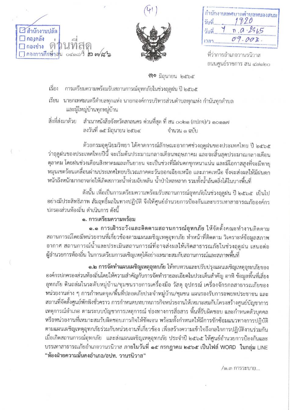 ประชาสัมพันธ์การเตรียมพร้อมรับสถานการณ์อุทกภัยในช่วงฤดูฝน ปี 2565 [7 กรกฎาคม 2565]