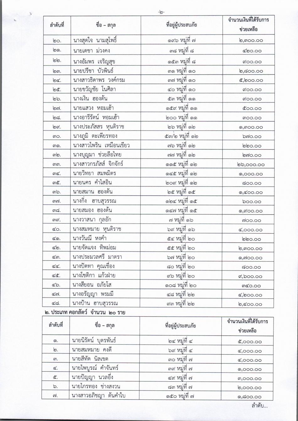ประกาศรายชื่อและการช่วยเหลือผู้ประสบภัยพิบัติฉุกเฉิน (เหตุวาตภัย และเหตุอัคคีภัย) พ.ศ. ๒๕๖๗ ครั้งที่ ๒